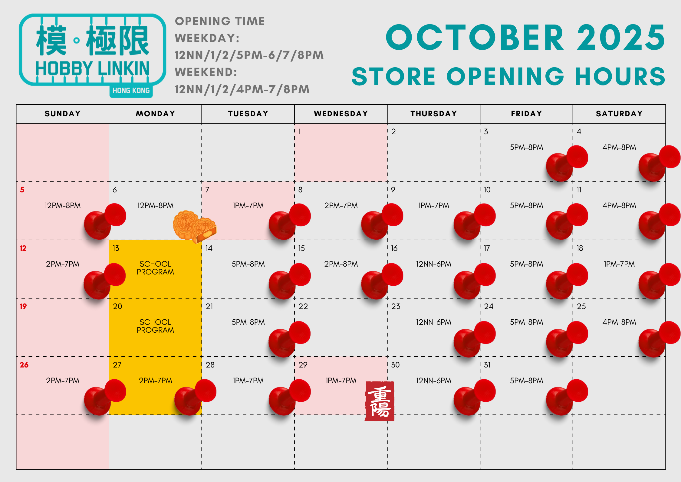 Welcome to hobbylinkin , Please check our schedule before you walkin .Thank you