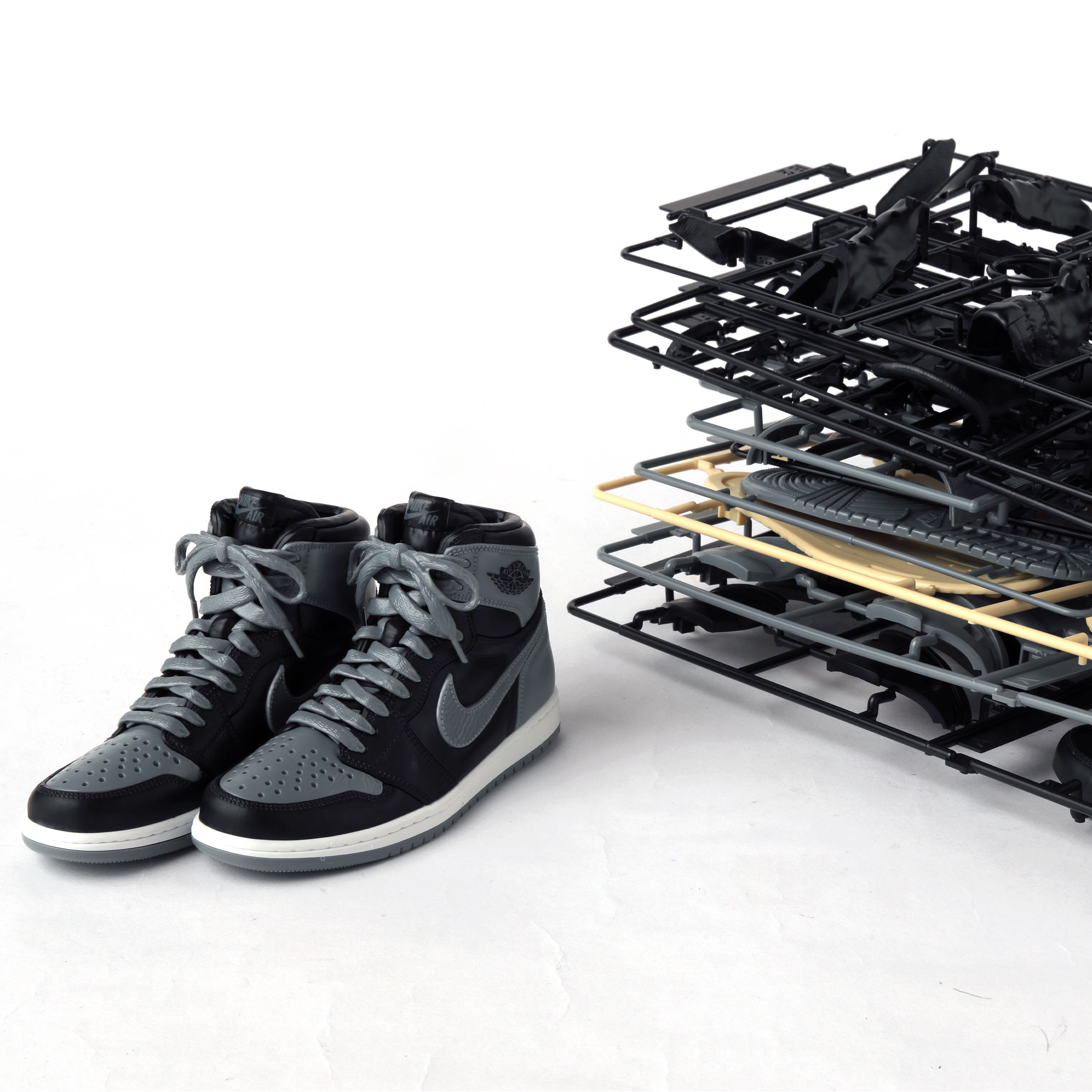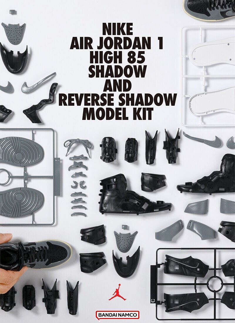 NIKE AIR JORDAN 1, the iconic sneakers loved across generations, now a plastic model kit crafted with BANDAI SPIRITS' advanced molding technology.Every curve, every texture, every shade—its distinctive design, reborn in stunning detail.Includes both the SHADOW and the REVERSE SHADOW models in one set.UPPERThe upper is brought to life with incredible realism, from its rounded, foot-hugging shape to the realistic texture of the leather, detailed stitching, and even the classic NIKE Swoosh adorning the side panel.LACESExperience laces with a fiber-inspired texture and molded accents that capture the look and feel of a perfectly tied lace.*The laces are fixed and cannot be changed.MIDSOLE / OUTSOLEThe midsoles of the two models come in different colors, with smoother contour parts that give the midsoles a distinct, rubber-lilke look. The distinctive outsole design is recreated with a molded pattern that blends straight and curved lines into a cohesive, textured layout.・ Molded parts recreate the color details of the SHADOW and the RESERVE SHADOW. Includes both pair of models in one set.・ Includes marking stickers for realistic detailing.・ Packaging inspired by the NIKE shoebox.