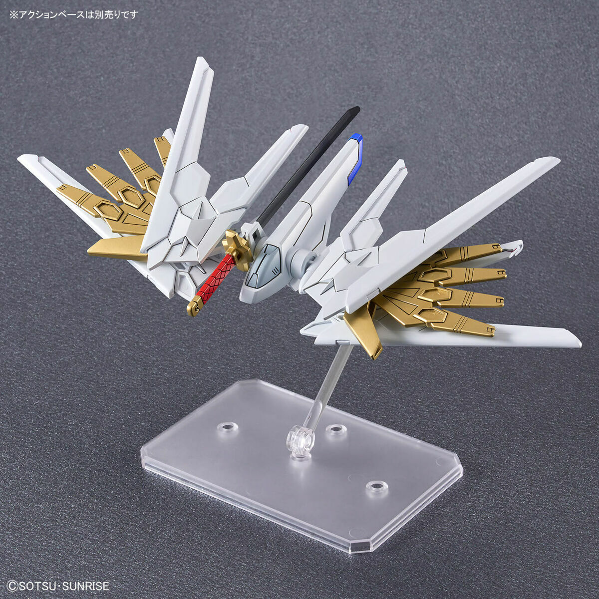 The Mighty Strike Freedom Gundam from Mobile Suit Gundam SEED FREEDOM will be available as an SDCS kit!■Two SDCS unique frames, a tall proportion (CS) and short proportion (SD) are included. The characteristics of the MS are recreated with gold parts.■The parts within the head can be rearranged to display the kit with or without irises.■The flight form of Proud Defender can be recreated. The wing armor can be deployed by sliding movement.■Futsunomitama, an anti-warship sword is included. Futsunomitama and Bean Saber can be held at the same time.■The deployed state of the cannon on the forehead can be recreated by opening and closing movement of the parts.■Railgun on the waist can be deployed to recreate the full burst mode.■Beam Rifle and Beam Saber are equipped with a connecting gimmick.[Includes:]■Futsunomitama physical blade ×1■Beam Rifle ×2■Beam Saber ×2■Head part ×1■Stickers x1
